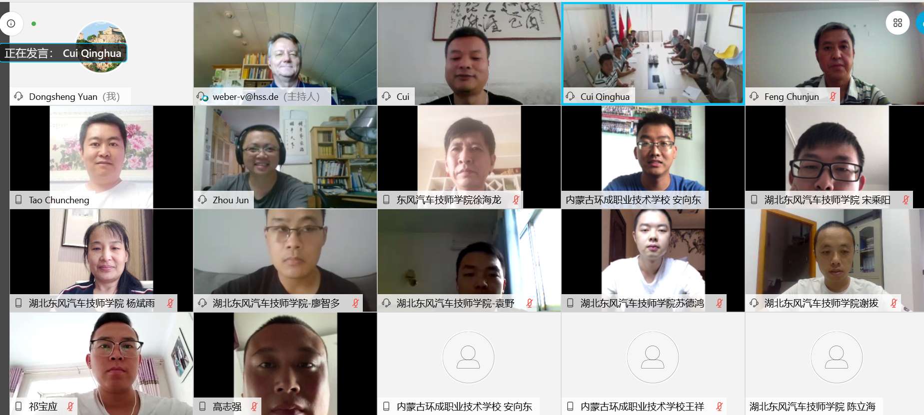 为提高职业院校汽修专业建设与专业教师教学能力,推进我校汽修能力中心建设,按照赛会中国西部职业教育与发展中心年度培训计划,2020年8月1日下午,赛会特聘汽修专业领域专家——山东-巴伐利亚职教师资培训中心的冯春军教授,对酒泉职业技术学院、内蒙古环成职业学校及湖北东风汽车技师学院的二十余名汽车技术相关专业老师开展了第一期线上培训,为大家解答德国巴伐利亚州汽车机电工专业课程标准,指导大家制定年度教学计划,为各学校建设汽车技术能力中心建设打好基础。德国汉斯·赛德尔基金会甘肃代表处项目负责人魏博先生线上主持了开班仪式并做了“德国职业教育体系和汽车能力中心建设”的专题讲座。魏博先生感谢学员在疫情防控的特殊时期参加此次线上培训,并预祝培训顺利开展。
