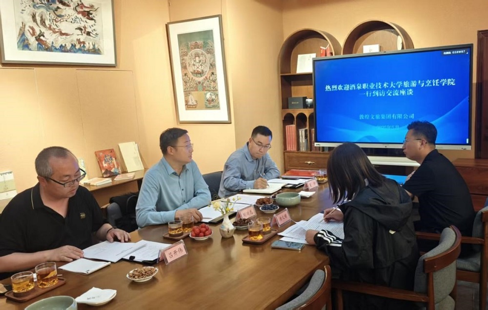 会议由敦煌文旅集团有限公司党委副书记、纪委书记唐文婧主持,酒泉职业技术大学旅游与烹饪学院党支部书记、院长刘兴龙、副院长董轩、旅游管理系主任吕开伟以及敦煌文旅集团党委委员、党建人事部总经理王强等参加会议。