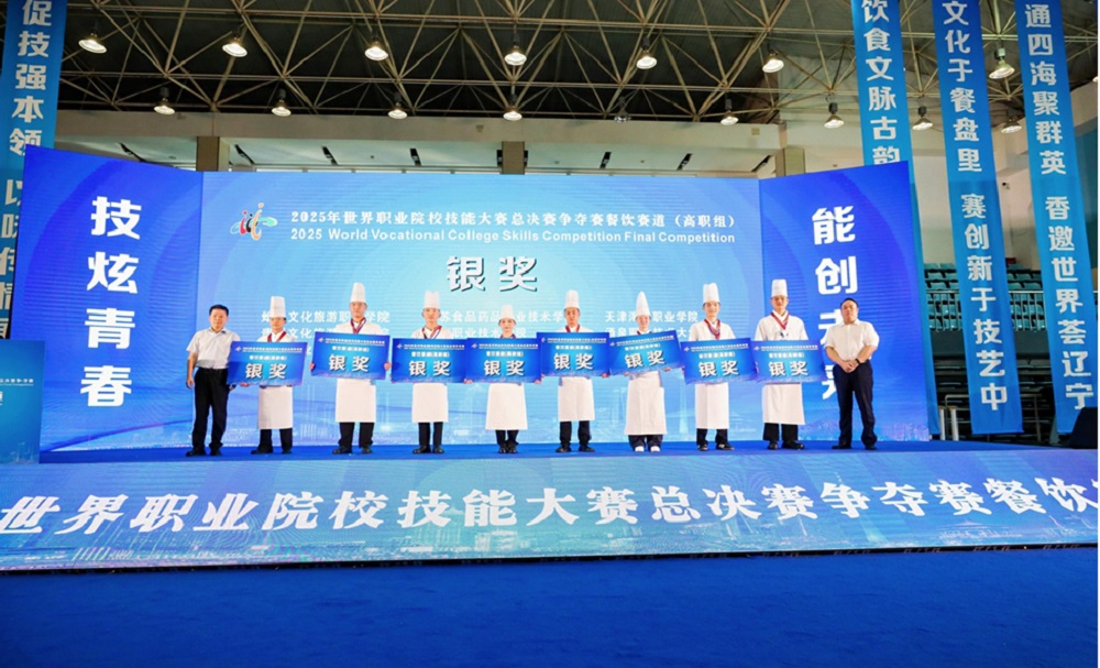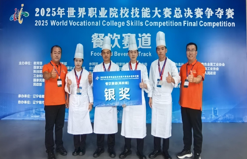院系动态 > 正文9 月13日,2025年世界职业院校技能大赛总决赛争夺赛 餐饮赛道(高职组)比赛在辽宁现代服务职业技术学院落下帷幕,酒泉职业技术大学旅游与烹饪学院学生权伟伟、焦文其、 杜耀东、王荣荣在教师杨国斌、董轩指导下凭借精湛技艺与出色发挥以小组第二名的优异成绩斩获银奖,为学校赢得了荣誉, 也为甘肃职业教育增添了光彩。