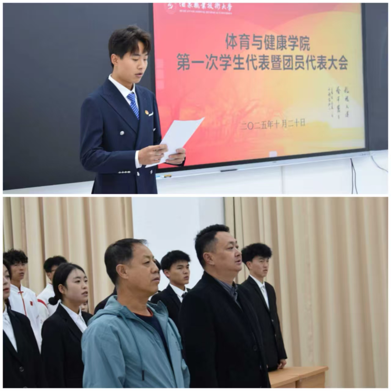 2025年10月20日,体育与健康学院第一届学生代表大会隆重举行。学院相关领导老师及全院各年级推选的三十余名学生代表共同参会。