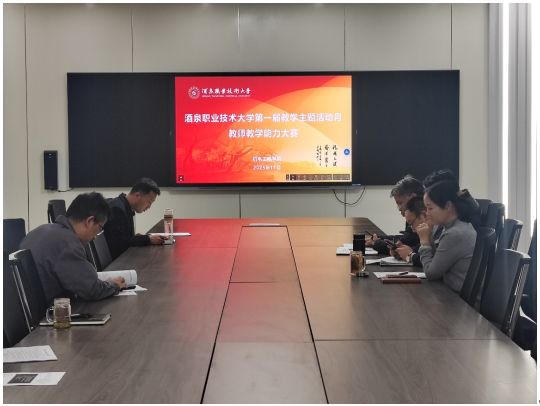 为积极备战2026年全省职业院校教师教学能力大赛,2025年11月26日下午,机电工程学院成功举办了酒泉职业技术大学第一届教学主题活动月教师教学能力大赛。本次大赛经过机电系、汽车系、自动化系初选和推荐,有5个课程组团队进入最终角逐。赛事评委组由学院领导班子成员和学院督导组成,教师发展中心赵大勇主任现场督导。