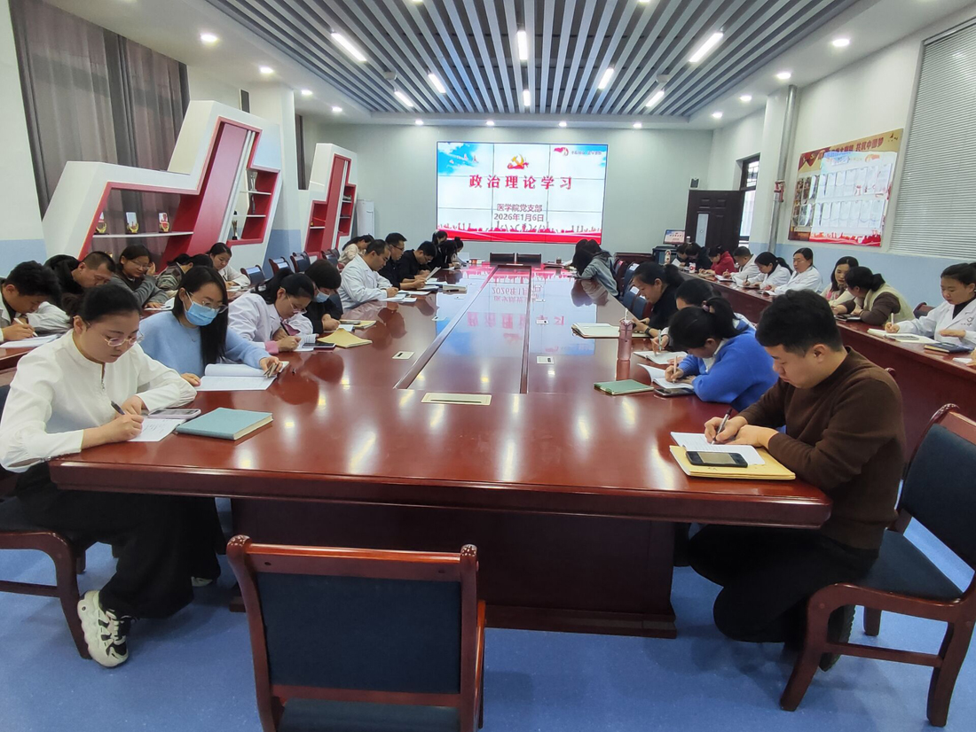 新年伊始,为持续深入学习贯彻党的二十大及二十届四中全会精神,切实提升教职工思想政治素养与理论武装水平,统一思想、凝聚力量,医学院于2026年1月6日组织召开专题政治理论学习会议。会议由医学院党支部书记范玉敏主持,学院全体党员及教职工共同参与。