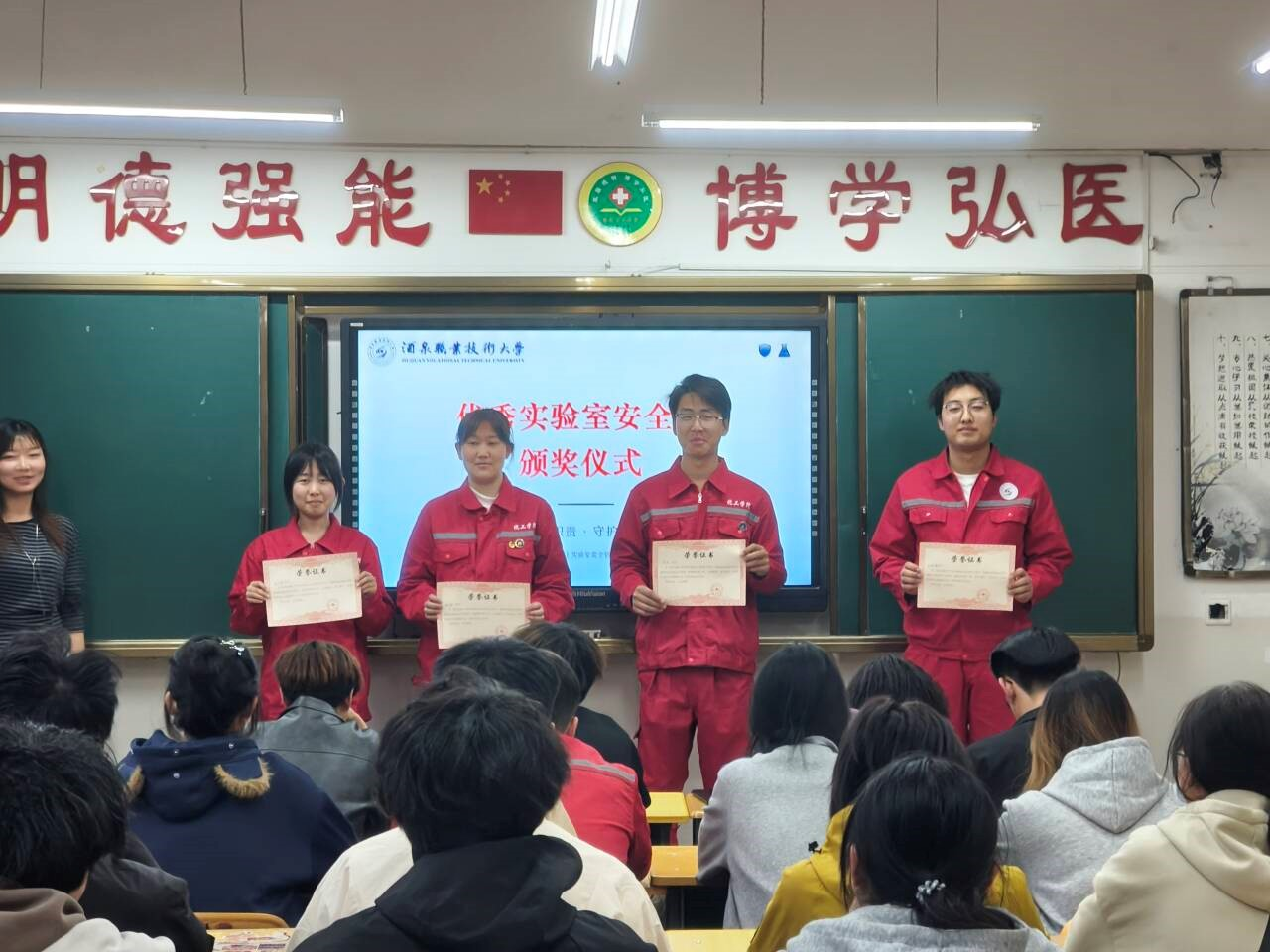 为进一步强化我院实验室安全管理,压实安全员责任,提升应急处置能力,筑牢校园安全防线,4月2日下午7时30分,化工学院在育英楼408教室开展了2026 年度实验室安全员专项安全培训暨优秀实验室安全员表彰颁奖仪式,全院28名实验室安全员参加活动。