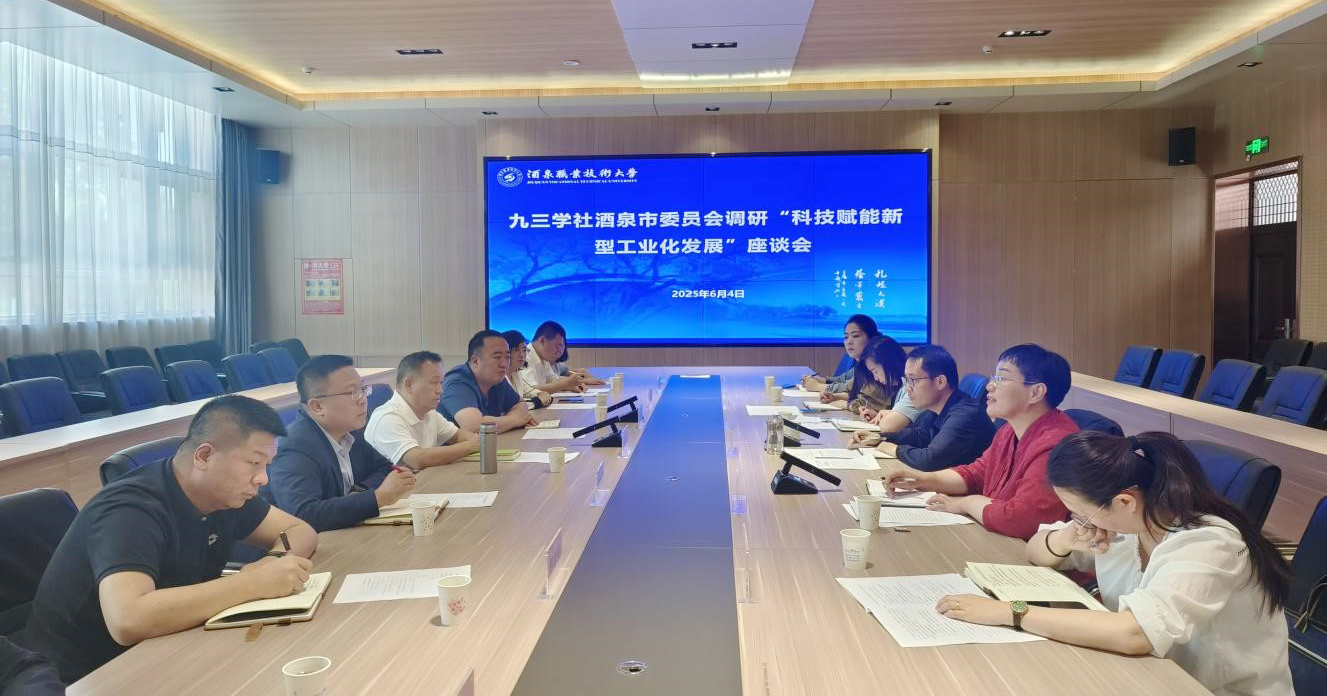为推动校地合作双向赋能,2025年6月4日上午,酒泉市人民政府副市长尹艳镇、市政协副主席马德敏率九三学社市委会来校开展“科技赋能新型工业化发展”专题调研。学校党委副书记王立智出席调研活动。