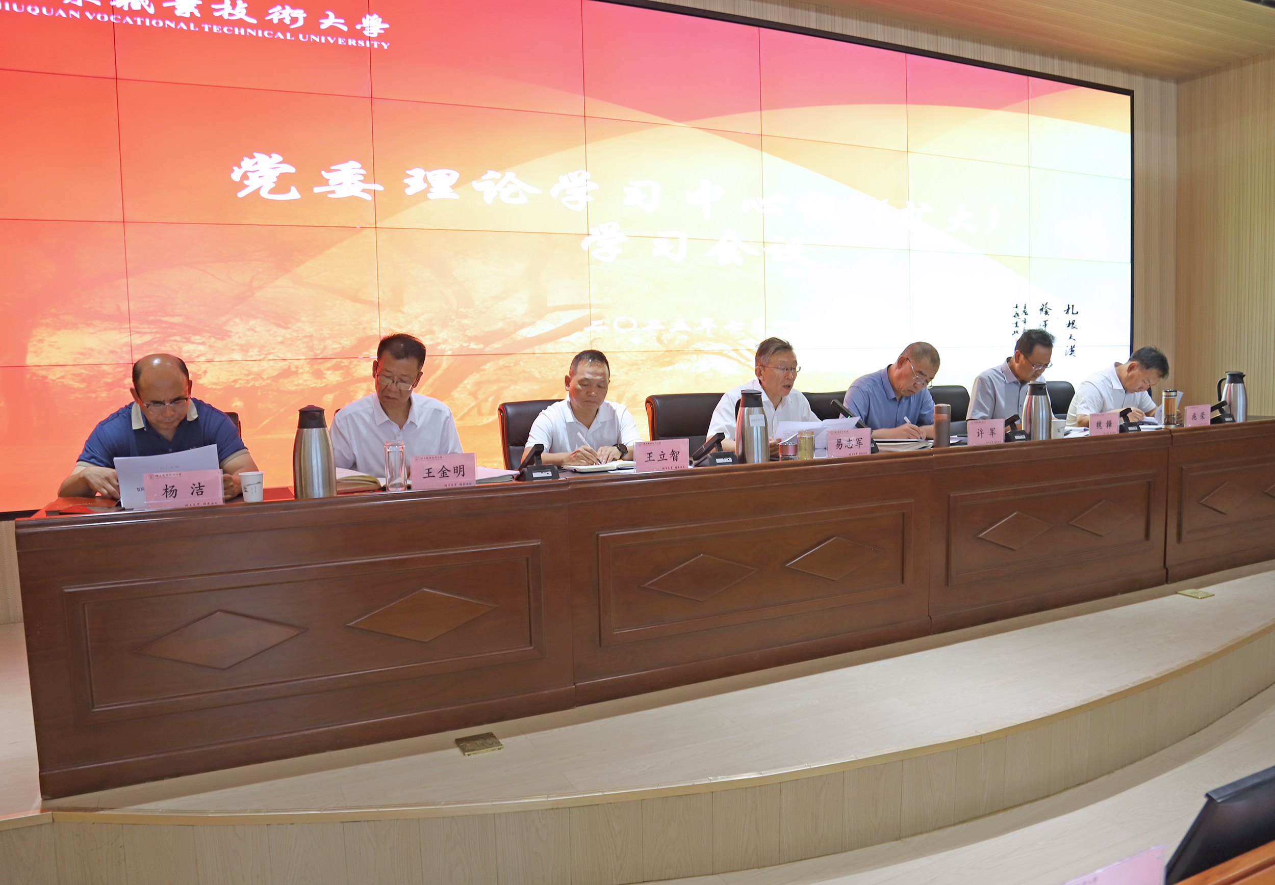 2025年7月1日,学校召开党委理论学习中心组(扩大)学习会议。党委书记易志军主持会议。党委理论学习中心组(扩大)全体成员参加会议。