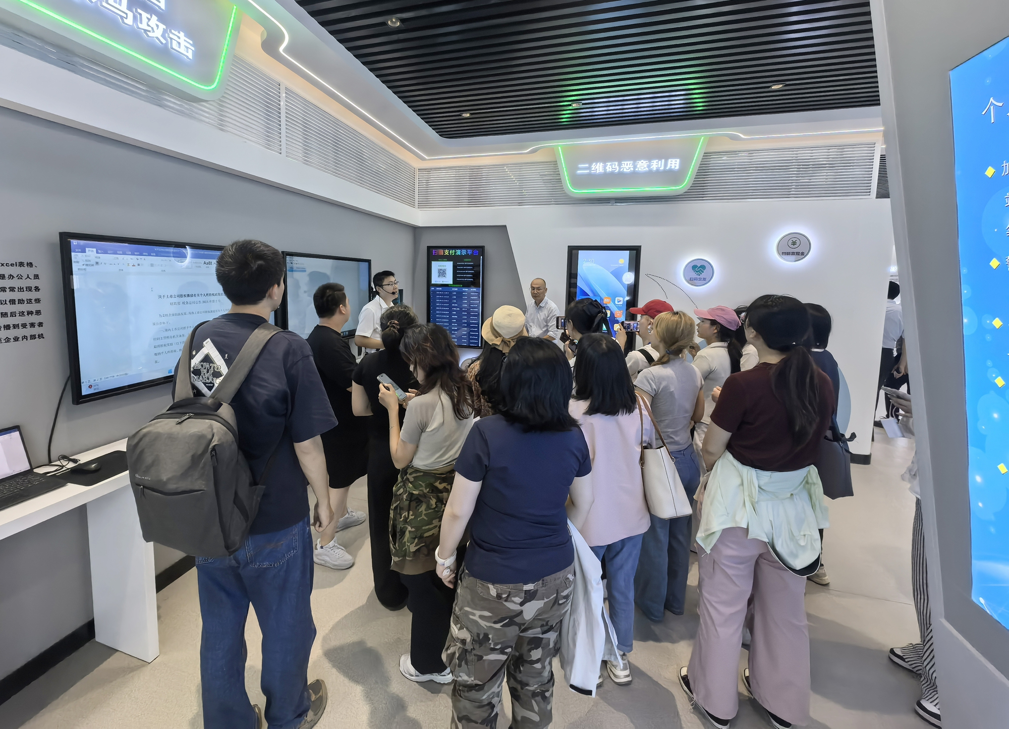 采访团一行实地考察了数字安全科普素养基地、大数据安全靶场及国家安全教育基地等场所,详细了解了学校网络安全人才培养模式、课程体系建设和科研技术创新等方面的特色举措与实践成果。在大数据安全靶场,观看了仿真攻击防御演练系统,了解了“攻防实训平台”运行机制。深入国家安全教育基地,通过图文展板、互动投影等形式,直观感受到学校将国家安全教育融入人才培养全链条的创新实践。