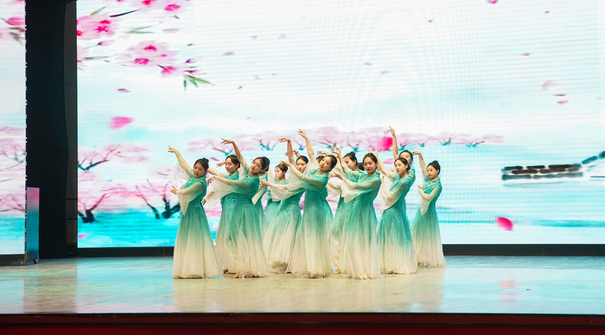 晚会的终章“胡杨·挺膺担当启‘新’篇”聚焦更广阔的家国与世界。电子与信息工程学院的表演《雪白的爱》表达了学子对祖国的深情厚谊,生物工程学院和教育与艺术学院的舞蹈则展现了对国家的热爱。来自新能源工程学院的留学生与在校生共同演绎的《舞韵同心圆》,呈现了多元文化的交融,推动了文明互鉴的交流。
