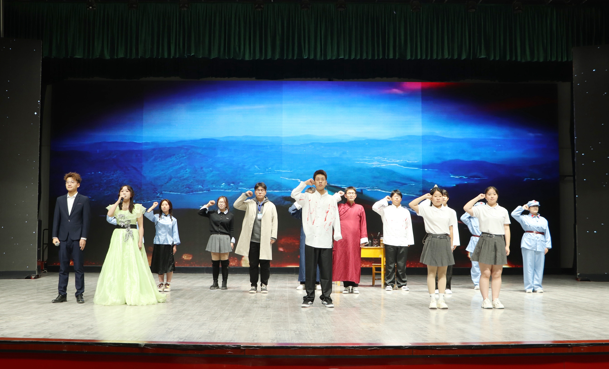 随后,“诵读红色家书  涵养家国情怀”红色经典诵读活动拉开帷幕。《追寻》《以身许国的共产党人》《写在生命边缘的信仰》等十个红色经典诵读节目依次上演。领诵者们以饱满的热情、真挚的情感将革命先辈的家国情怀、坚定信仰娓娓道来。这些红色家书,或是革命先辈在生命边缘对信仰的坚守,或是在烽火岁月里对家人的深情牵挂,每一封都承载着厚重的历史记忆与精神力量。领诵者们通过声情并茂的诵读,让在场师生仿佛穿越时空,真切感受到革命先辈为了国家独立、民族解放舍生取义的崇高精神。